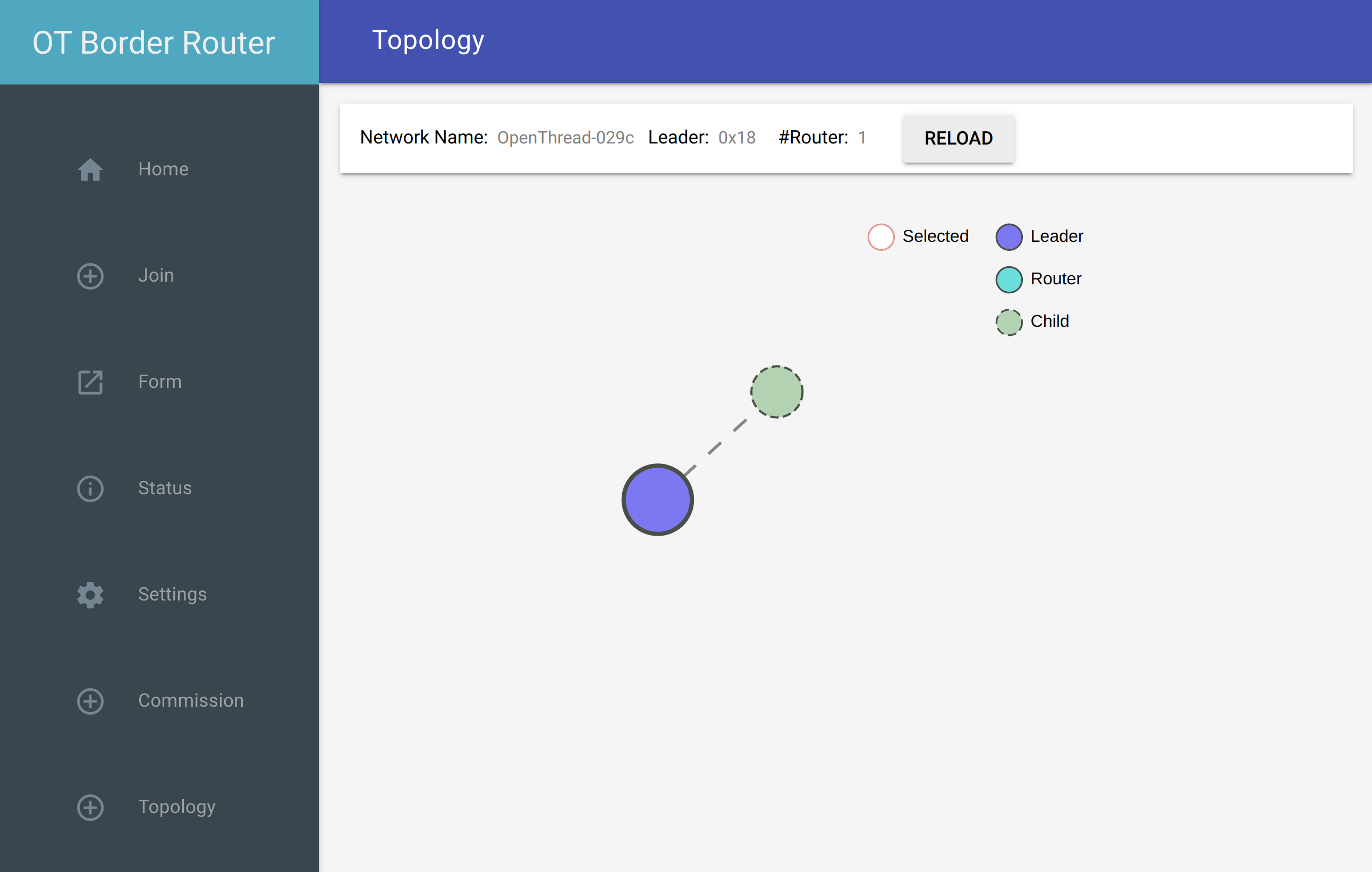 (optional) On the OTBR GUI, under the Topology tab, you can now see the two connected Thread nodes: